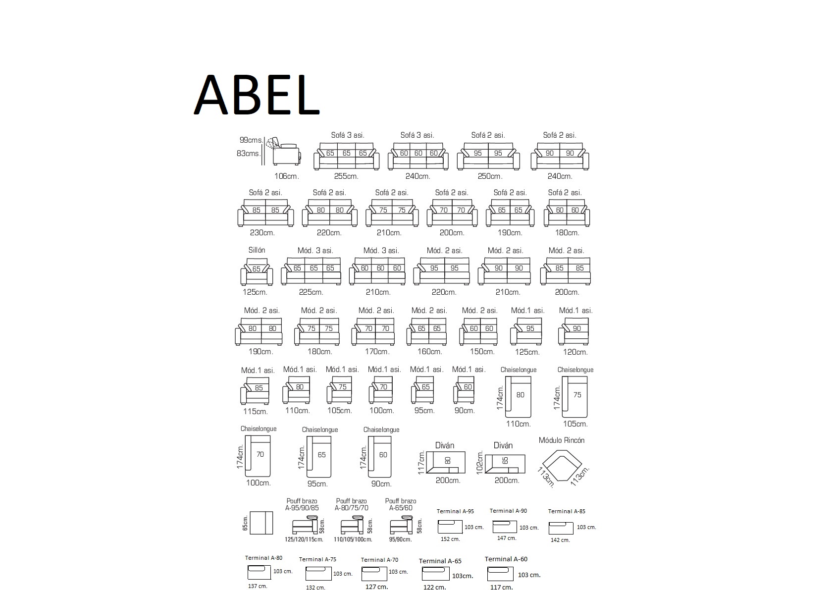 - En los módulos chaiselongue, la medida de fondo solo se podrá modificar en -10cm. o -15cm. Cualquier modificación de estas dos medidas tendrá un incremento de 50 puntos.